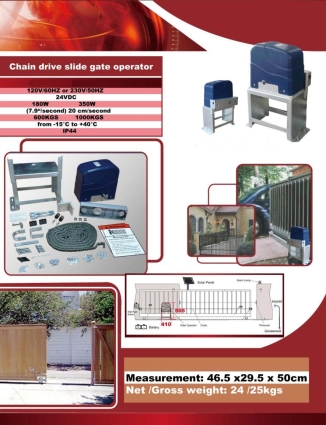 This Solar Kit Sliding Gate Opener For Sliding Gates Up to 60-Feet Long and 2200-Pounds is designed for residential/commercial applications. Stay